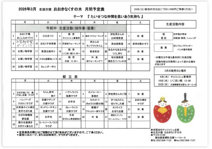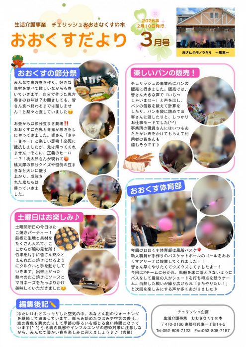 今月の予定表とおおくすだよりです😊