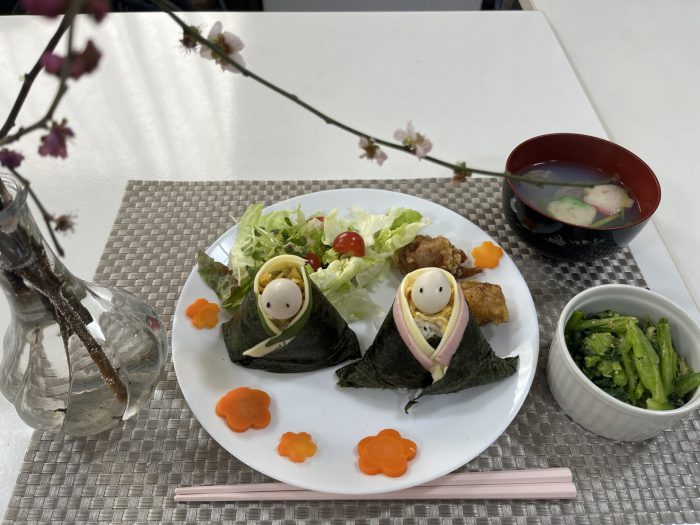 ひな祭り🎎でした。今年は、食べるのがもったいない可愛いひなむすびランチ。おやつは、みんなで作ったおこしものです。瀬戸蔵ミュージアムにおひな様を観に出かけたりと、みんなでひな祭り楽しみました✨